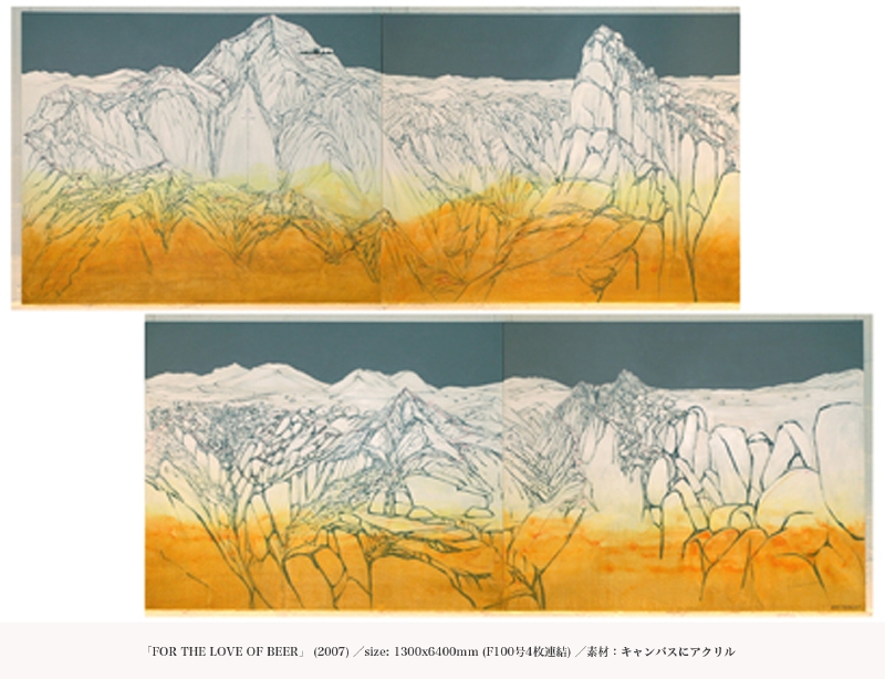 3|「FOR THE LOVE OF BEER」, 2007, 1300x6400mm (F100号4枚連結), キャンバスにアクリル