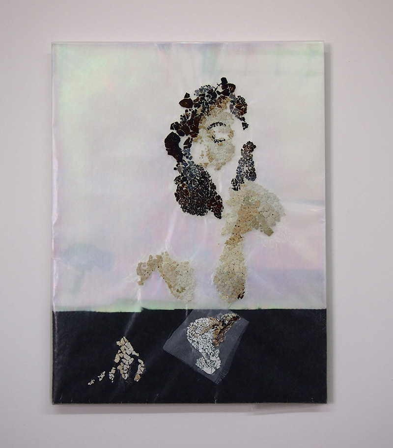 4| omen / コラージュ、鶉の卵殻、インクジェットプリント、ワックスペーパー / 22.2×20.9cm / 2014