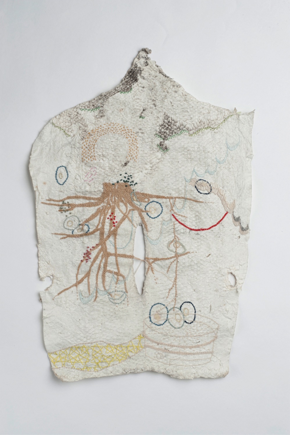 5|「ビビコワさんの宿題」鮭皮に刺繍/ 39cm×29cm/ 2013