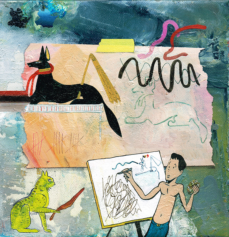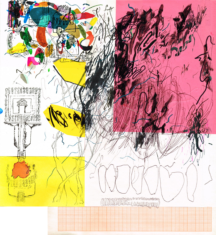 3|古図再考/ Acrylic, felt-tip pen, ballpoint pen, cellophane, color seet on paper and collage/ 280x285mm/ 2014