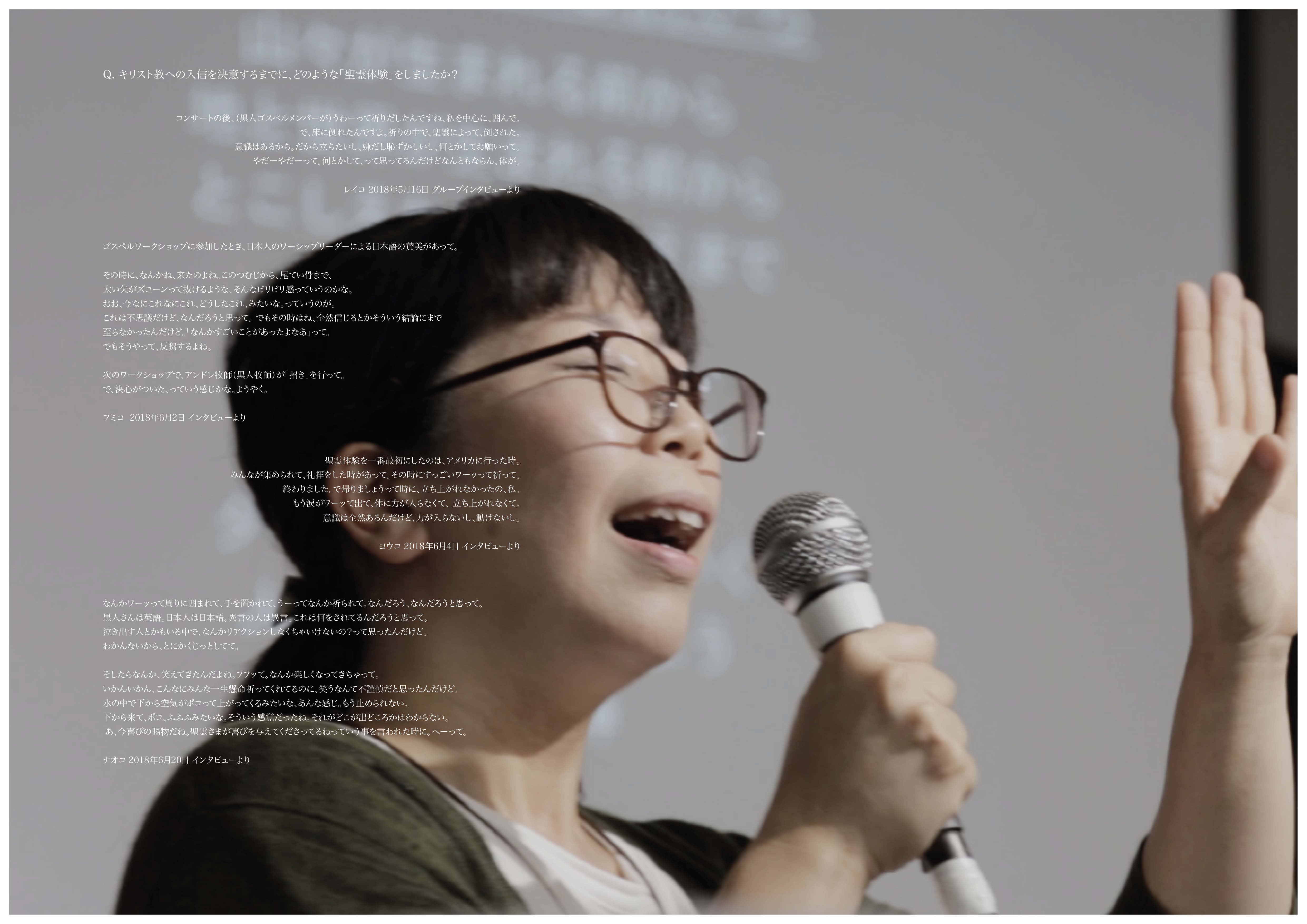 その他に私が大きな期待を寄せた方についてお名前を挙げさせていただく。杉山有希子さん。特殊カメラを使ったソリューションが卓越していた。Yukawa-Nakayasuさん。見せたいと思うビジョンを実現する力量に瞠目した。船川翔司さん。無人島生活をモンゴルで行うプランから、この世に生きる実感を得ようと模索していることが伝わってきた。韓成南さん。映像メディアの特性を捉えつつ、社会のありようを考察する実践に期待したい。トムスマさん。ラトビアで人々と合唱する、これまでより大きな構想。応援したい。河原康佑さん。力のある過去作のドローイングに興味を持った。強制労働に駆り出された祖父についてのリサーチがどう絡んでくるのか、注視したい。勝本彩耶可さん。ゴスペルの霊性についての調査は(私自身過去にゴスペルクワイヤに所属していたこともあって)個人的に興味を引かれた。ただ、調査先に正解があるわけではないので、慎重に作品を育てていってほしい。ノガミカツキさん。インターネット世界と仏教の親和性を論じた構想には興奮させられる。説得力ある表現での展開を期待したい。