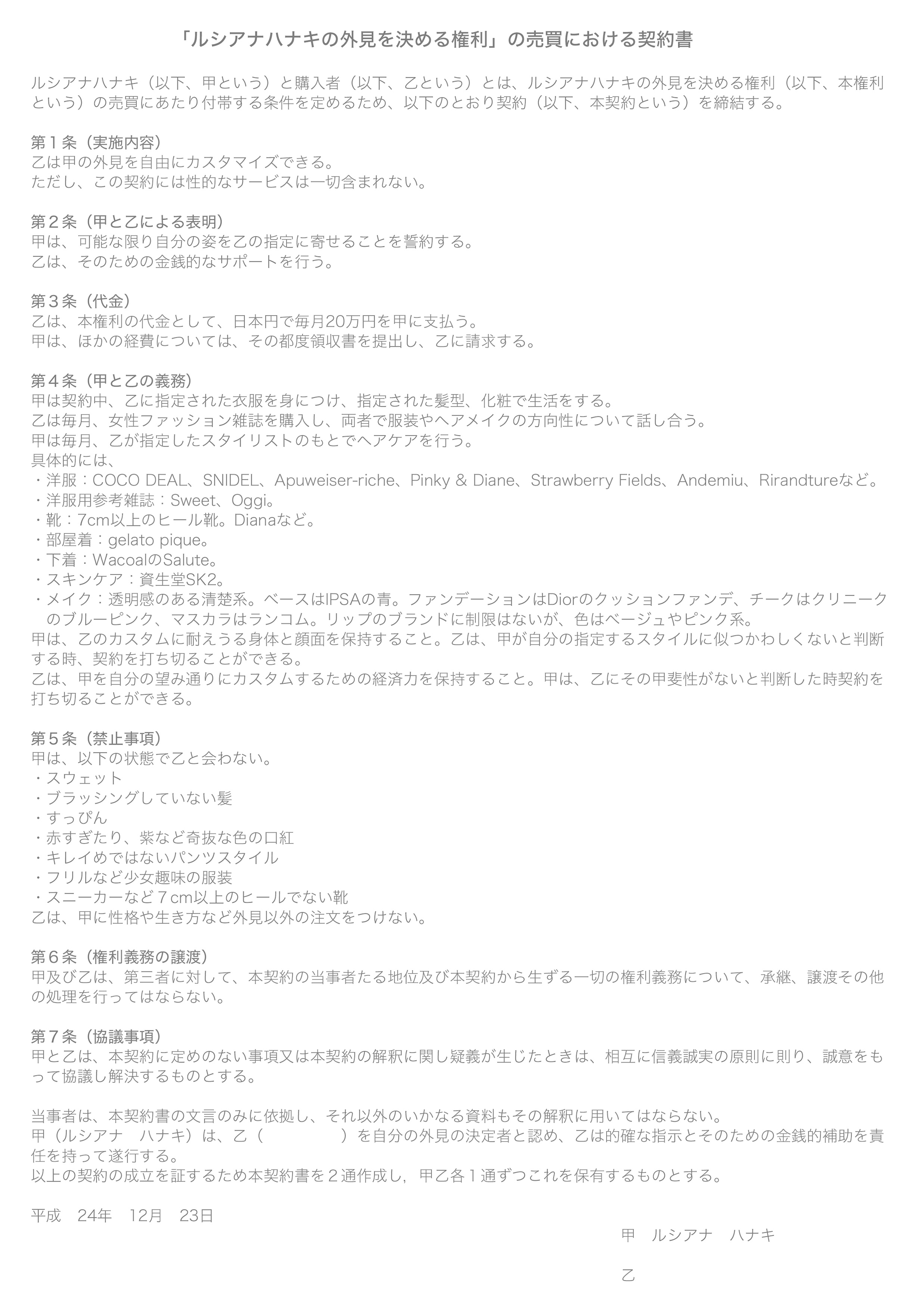 5|「ルシアナハナキの外見を決める権利の売買における契約」リサーチ/2016-2018